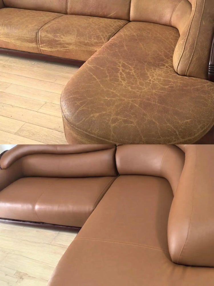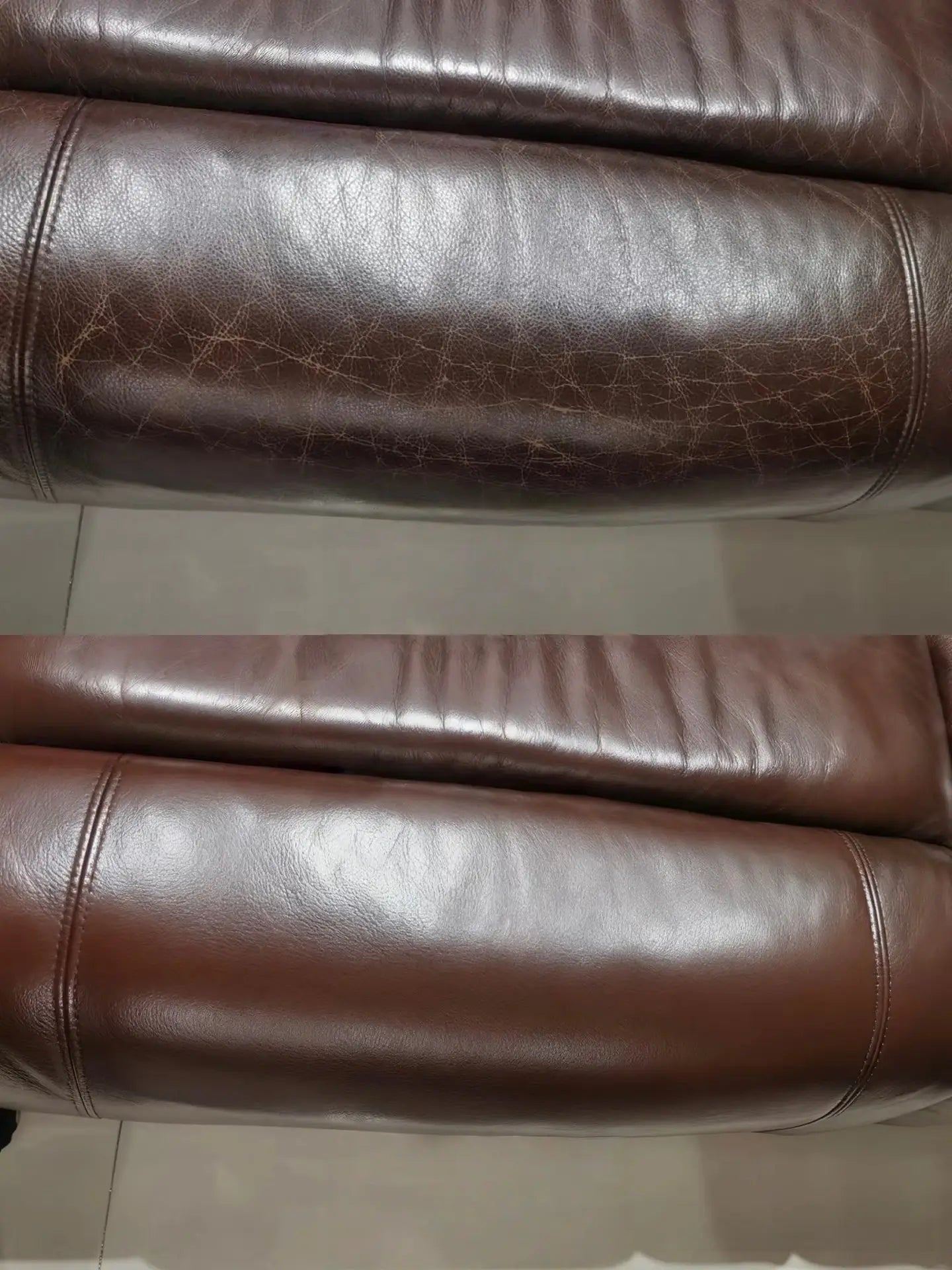 It saved my old couch, it was full of kids' oil stains, markers. The cleaner wiped out stubborn dirt easily without damaging the leather, and the conditioner made it super soft and shiny again, no greasy feel. Fresh natural scent too! Perfect for couches, jackets, or car interiors. One kit does it all!