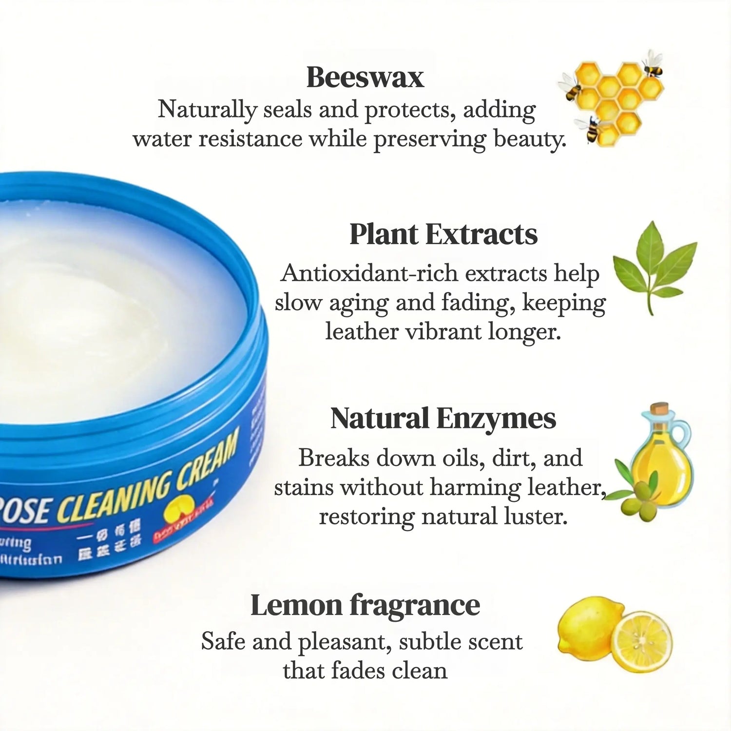 Perfect for sofas, car seats, and bags—cleaning thoroughly while preserving the leather’s original look and feel.